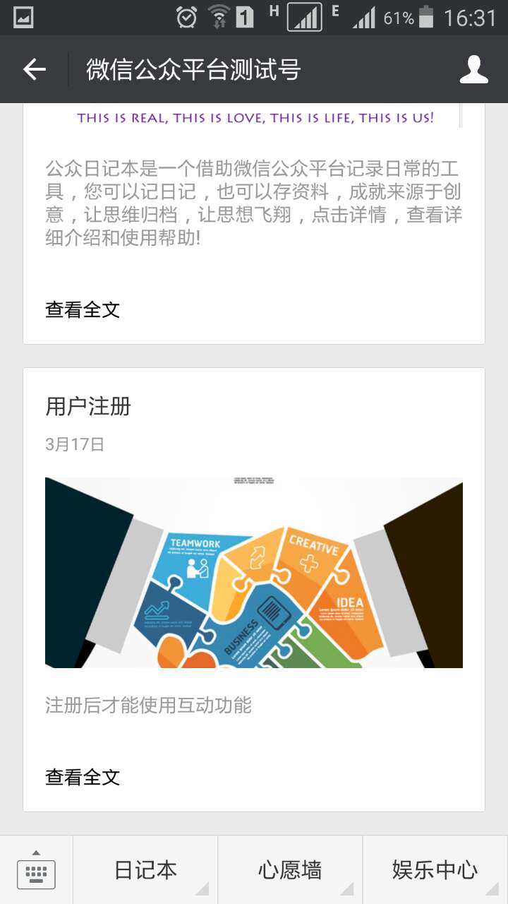 添加注册、主页、我的主页、删除上一条等命令,把公众笔记本迁移到订阅号,以便可以群发消息